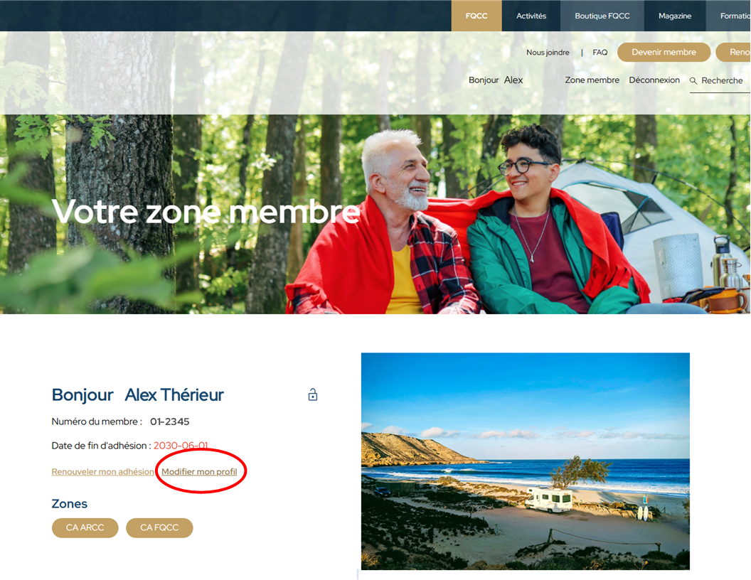 Pour modifier l’adresse courriel de votre dossier, cliquez sur Zone membre, puis connectez-vous.