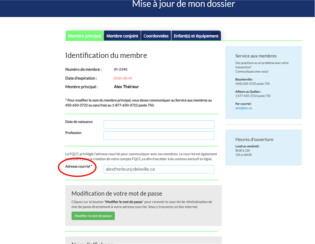 Vous pouvez également effectuer le changement en nous contactant à info@fqcc.ca ainsi qu’au 1 877 650-3722 poste 750.